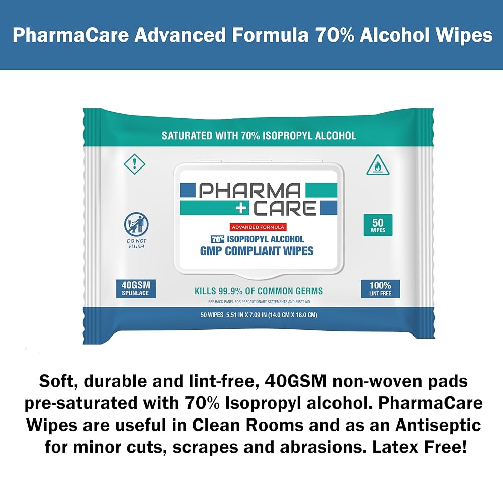 All PharmaCare Specialized Institutional Alcohol Wipes are durable, lint free, kill 99.99% of common germs and are USP and GMP compliant.