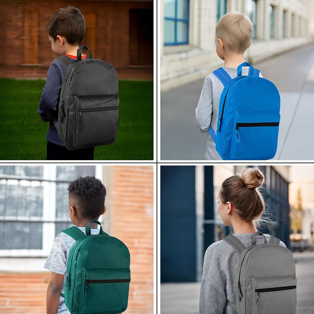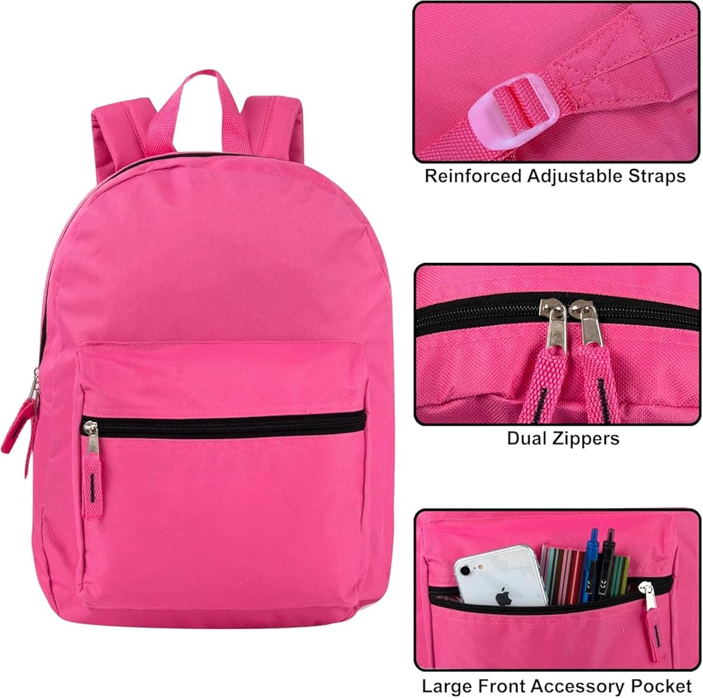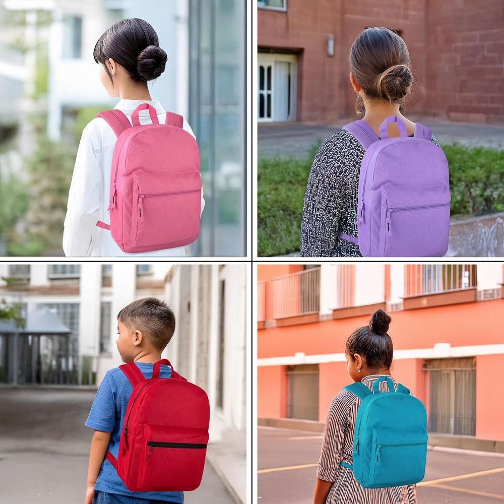 Trail maker Wholesale 15 Inch Kids Backpacks in Bulk With Padded Straps, 24 Pack Small Backpacks for Kids Bulk (12 Color Assortment #2)