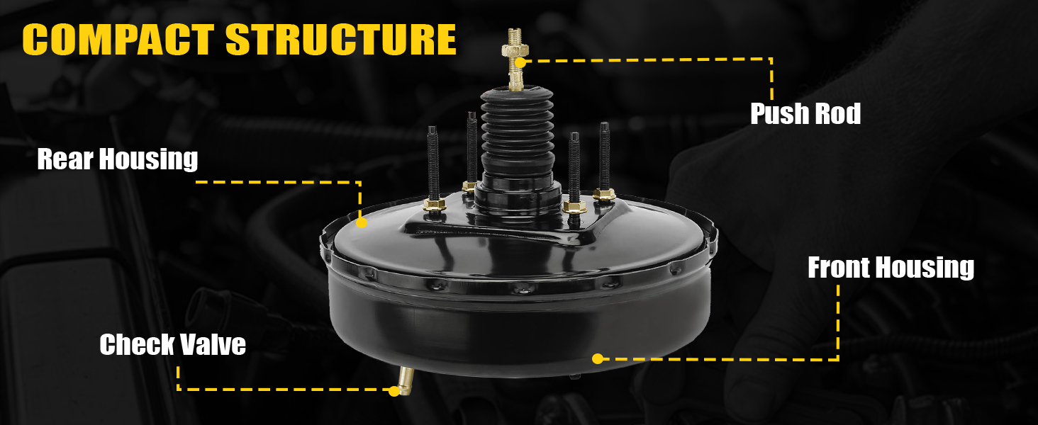 - 【Product Specifications】Color: Black; Material: Steel; Brake Booster Diaphragm Style: Dual; Master Cylinder Stud Thread Size: M10x1.5; Package Contents: 1 Power Brake Booster