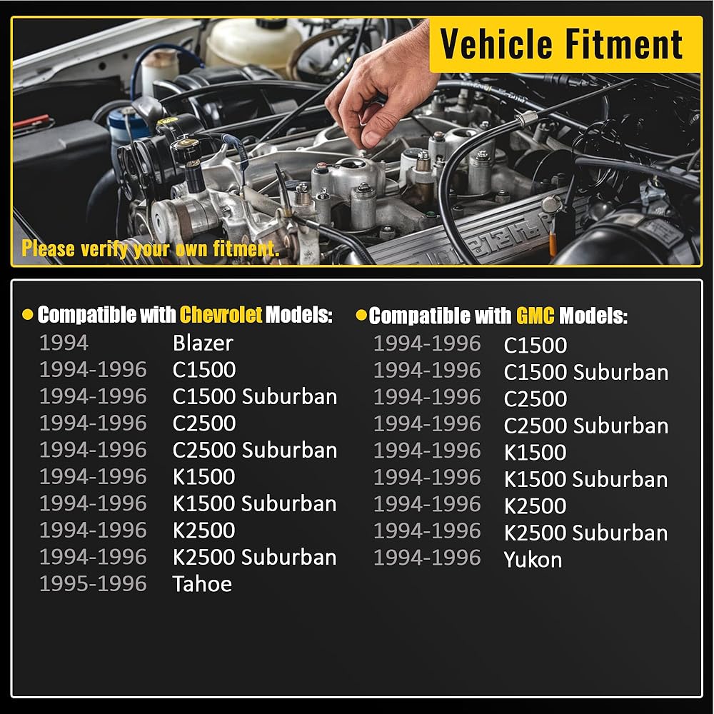 - 【Vehicle Fitment】Compatible with Chevrolet Blazer 1994, C1500 K1500 K2500 C2500 Pickup 1994-1996, C1500 K1500 K2500 C2500 Suburban 1994-1996, Tahoe 1995-1996