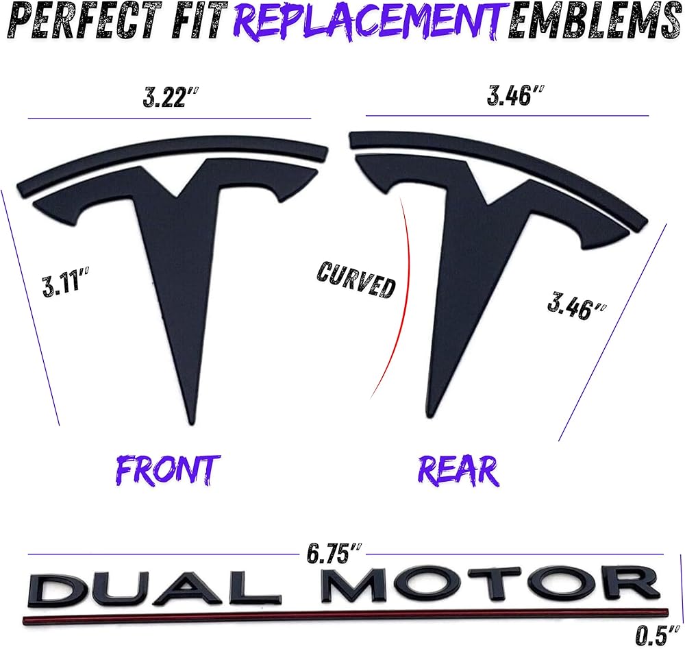 【Features】 Tesla T Logos & Dual Motor performance emblem in the official Tesla font/size to maintain an OEM look! Redone in a Matte Black or Glossy Black finish. Our premium T Logo & Dual Motor emblems are a great accessory for any Tesla owner.