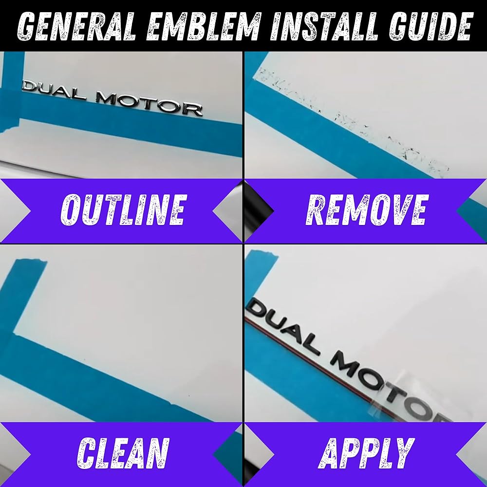 【DIY Install】 Unlike stickers (that peel over time) or cap/covers (that look terrible and scratch the paint), our emblems are designed to replace your factory emblems. Maintaining space, appearance, and fitment. Start by removing stock emblems. Then, thoroughly clean the area & apply the new T Logos. For the Dual Motor, remove the rear plastic shield, apply to the vehicle and then remove the top plastic shield.
