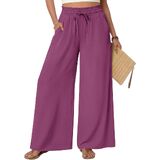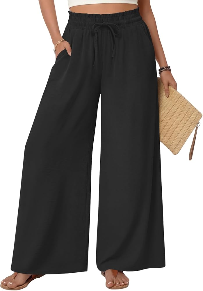 Features: The casual wide leg pants have 2 side deep pockets. An elastic waist with drawstring allows for easy adjustments. The high-waisted cut flatters the figure. The flowy and elegant pants fall at the ankles like a long skirt. They can be dressed up or down