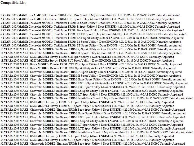 • This E.C.M. fits the following vehicles: 2003-05 4.2L GMC Trailblazer/Ext.