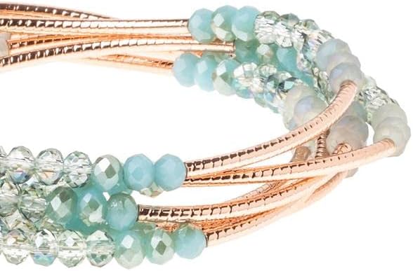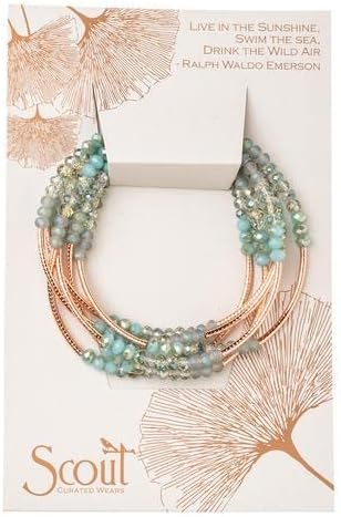 The Scout Wrap is made with crystal beads and etched metal findings. It can be worn wrapped 6-7 times for a bracelet and 1-3 times for a necklace. Displayed on beautiful cards and personalized with inspiring quotes they make a great gift!
