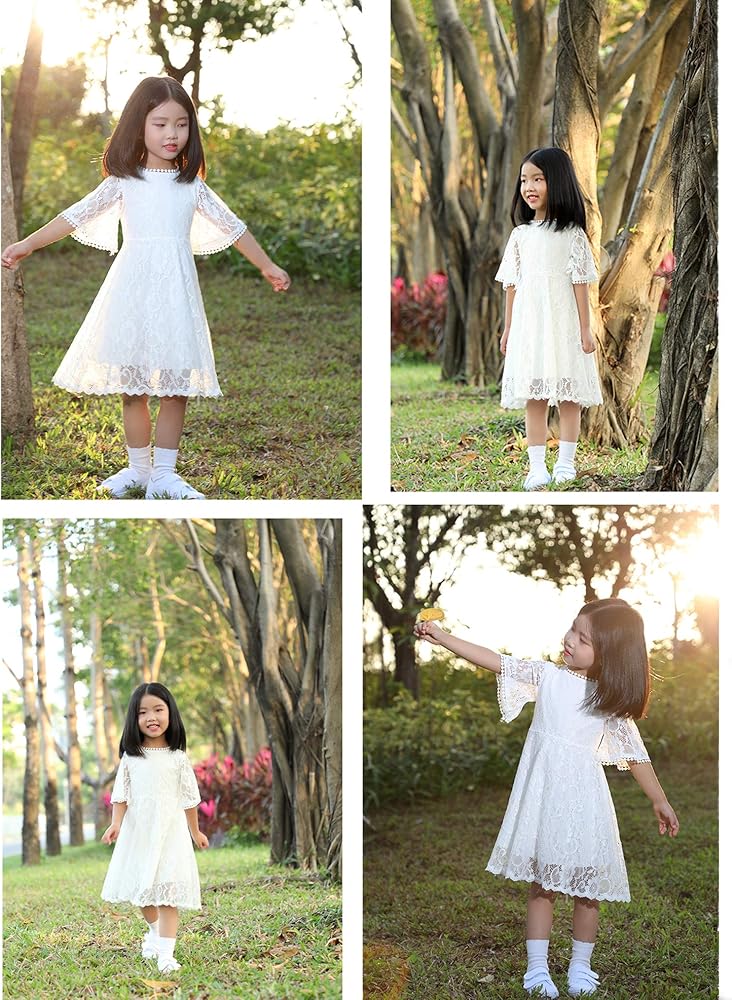 ★★ Design: O Neck, high-waisted design, half sleeves, knee-length, hollow out floral lace spliced, hidden back zipper closure, elegant flower girls lace dresses. Simple but beautiful design features a chic style for your princess and makes your little fairy look so distinctive, beautiful and elegant everywhere! Receive many compliments