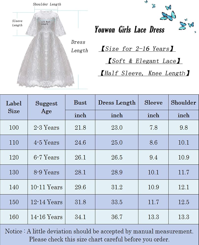★★ Size: Girls lace dress 2T 3T 4T Size 5 6 7 8 9 10 11 12 13 14 15 16 years old girls. Please refer to our size information in the below product description or the left picture for Detail Size Chart before ordering. And there are five color white off white beige black red lace dress for you to choose