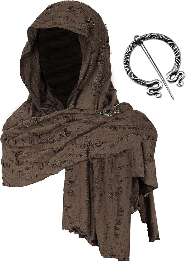 Packaging includes: 1x cloak with hood for adult, 1x brooch pin