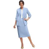 Material: The Jessica London Skirt Suit is crafted from Textured Crepe, a blend of Polyester and Spandex. This fabric combination provides both comfort and a flattering fit.