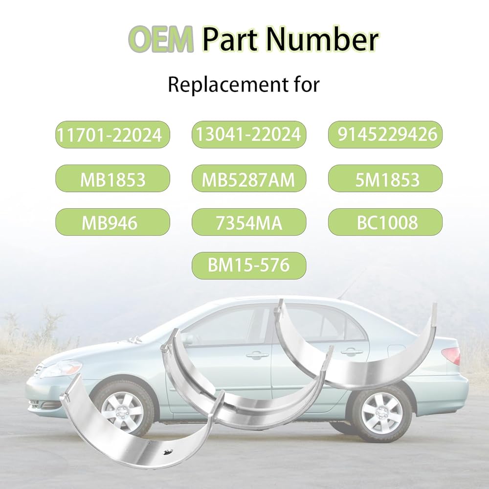 Main Rod Bearing for Toyota Celica 1.8L L4 2000-2005, Pontiac Vibe 1.8L L4 2003-2008, Toyota Corolla 1.8L L4 1998-2008 Replacement for 11701-22024 13041-22024 MB1853 20PCS