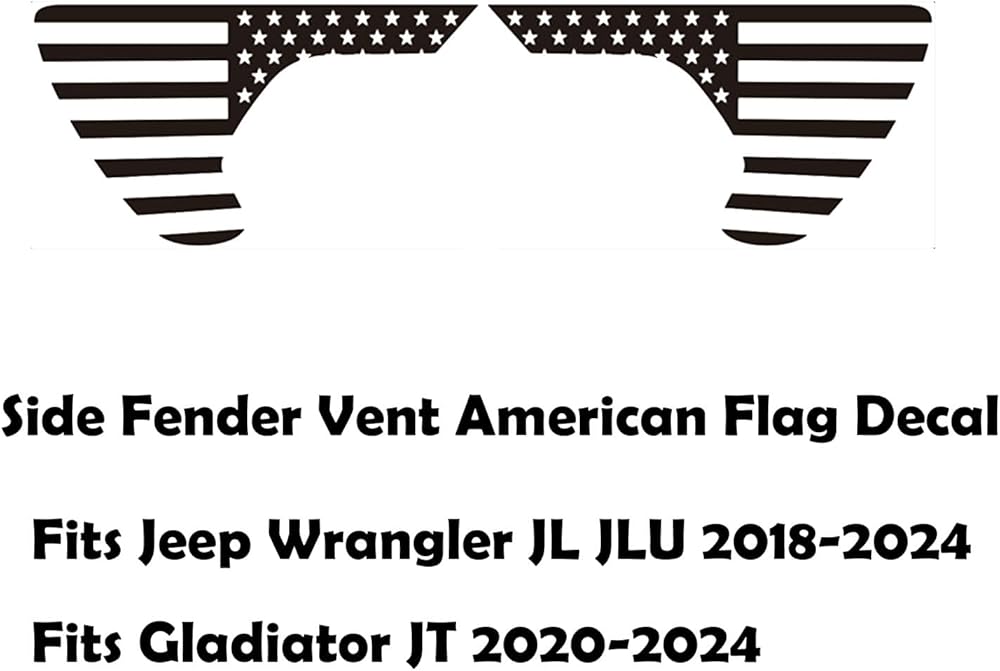Zxiaochun Side Fender Vent American Flag Decals Precut USA Flag Vinyl Sticker for Jeep Wrangler JL JLU 2018-2022 2023 2024 2025 2026 & Gladiator JT 2020-2023 2024 2025 2026 Accessories(Matte Black)