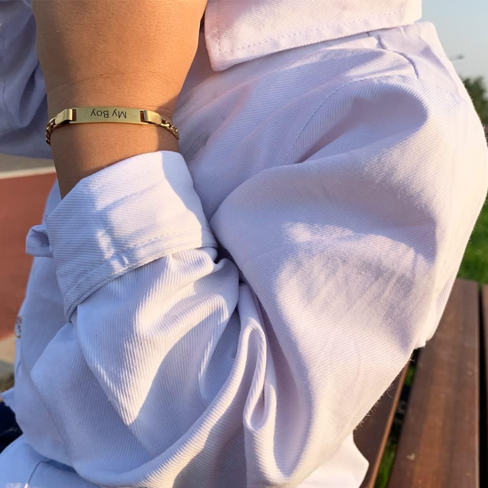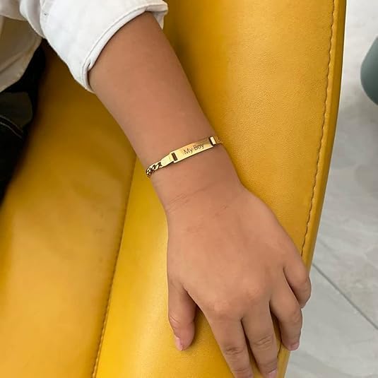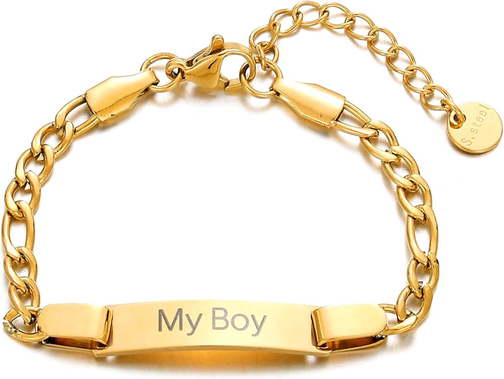 - Design:Gold plated stainless steel boy's bracelet with adjustable extension chain, suitable for boys from 2years to 7 years old to wear.