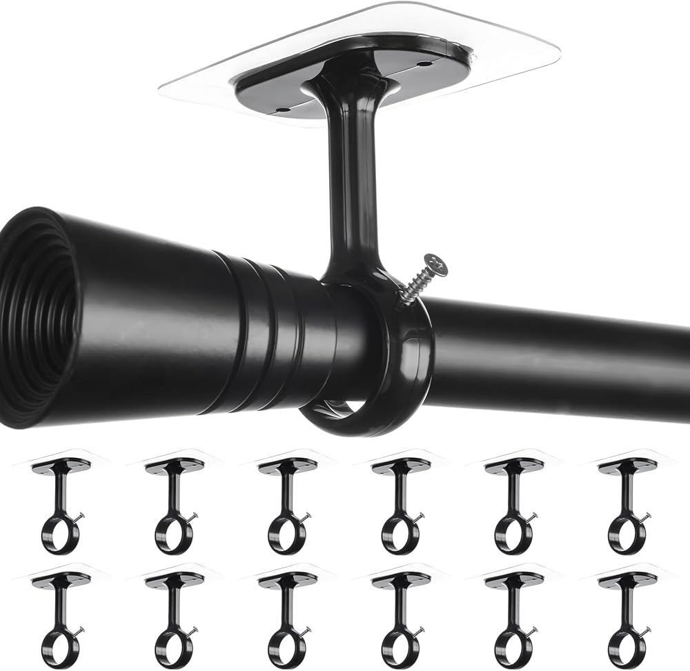 【Tool-Free Installation】Easily install 6 self adhesive curtain rod holders without tools. Just peel off the adhesive backing and stick curtain hangers to smooth surfaces like glass, mirrors, tiles, marble, and stainless steel. Wait 24 hours before use. For rough surfaces (painted walls, wallpaper), install curtain rod bracket with screws
