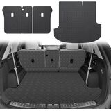 【Easy to Install and Clean】 The custom trunk mats with back seat cover set are easy to install and remove. There are little Velcro hooks on the back of the mat that grip the carpet in the cargo area. Multiple tests prove that it won't crack, curl or break down. simply rinse and wipe with clean water to refresh the car's custom cargo mats.