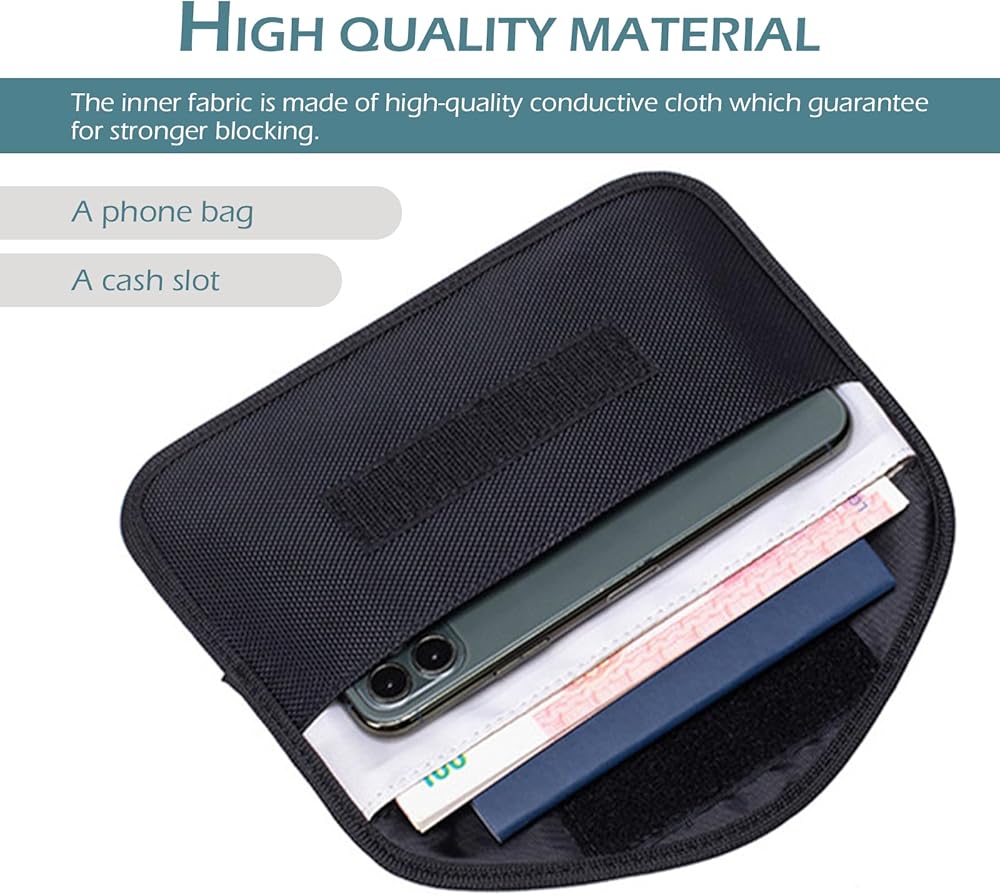 High-quality Materials: The outer fabric of the mobile phone Faraday bag is made of high-quality Oxford cloth, which is durable and wear-resistant, and the inner fabric is made of high-quality conductive cloth, which ensures a stronger shielding effect, is convenient and easy to use, and has a long service life.