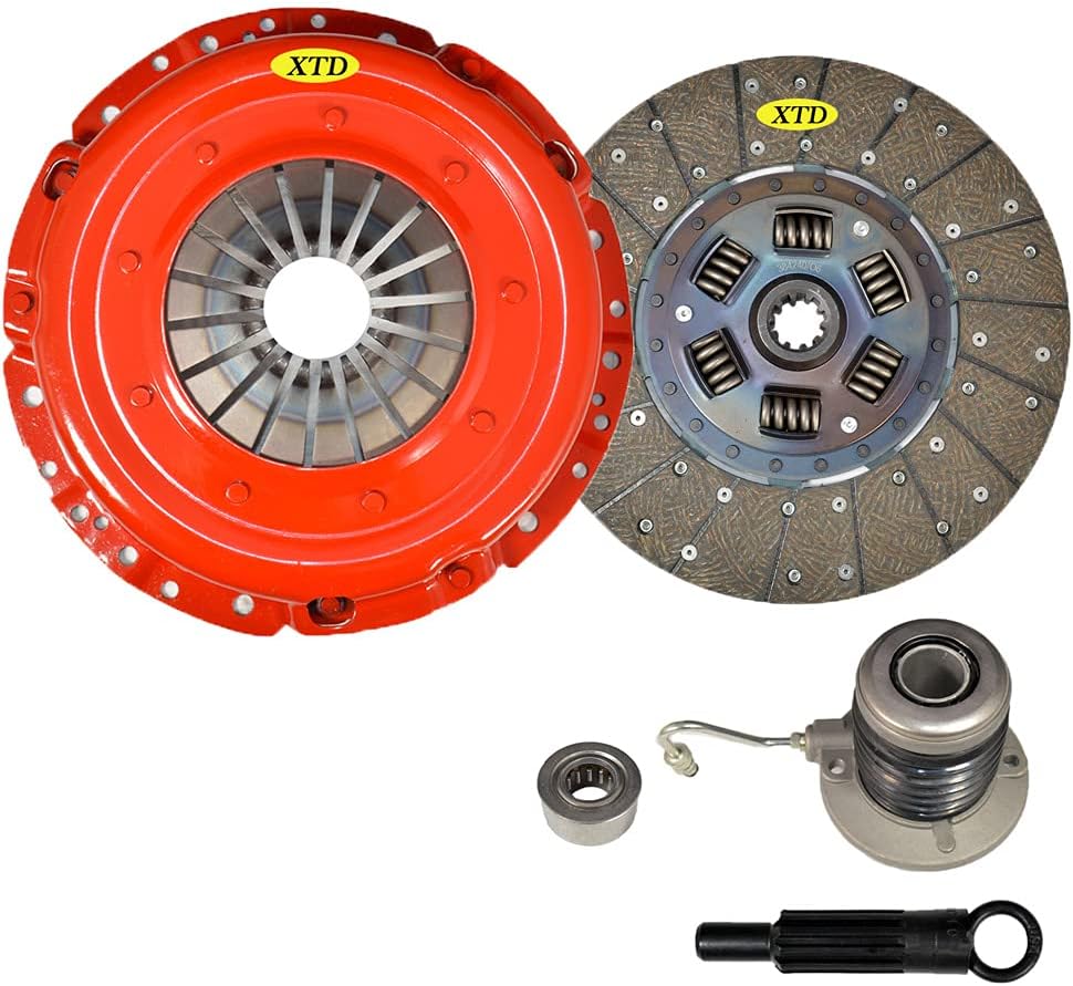 You are bidding on brand new XTD Stage 2 Sports clutch kit for 2005-2010 FORD MUSTANG GT,BULLITT & SHELBY GT (4.6L SOHC 8CYL)..This Carbon Kevlar clutch is generally used with our Street Series clutches. This disc uses the same CCI heavy duty high torque internal assembly used in our most extreme Strip clutches. We then add our unique woven Carbon Kevlar, steel back frictions for maximum added burst strength and thermal dissipation. This is the ultimate Street clutch. This XTD Stage 2 Clutch Kit Includes XTD Heavy-duty Pressure plate,XTD Carbon Kevlar Steel-back Street Disc,JDM Throw out Bearing,Alignment Tool,clutch installation and XTD clutch Logo window decal.This XTD Pressure plate Holds 25% more HP and Torque Than Stock Pressure Plate and This Pressure plate is made from ductile iron and heat Treated Which is about 30 to 40% Stronger Than Just Stock Cast Iron Pressure plate. XTD Stage 2 clutch is Designed for Smooth Engagement,quiet operation and improved durability using only the best Kevlar, spring center designs.This XTD Stage 2 clutch kit is Works Great for Just Stock and Mildly Modified Application.Every XTD Sports clutch kit Designed for Street (Daily driving) so It won't make you difficulty on Everyday Normal driving.All XTD Racing Clutch Kit Required 500Miles Break-in Period.