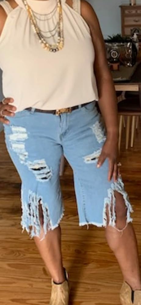 Features:High waited destroyed denim shorts for a curvier look. Zip closure in the material for a comfortable fit.It pushes up your curves, providing perfect body line.