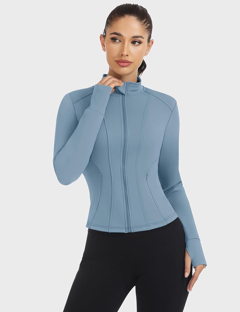 Women's Workout Jacket Lightweight Zip Up Yoga Jackets Cropped Athletic Slim Fit Tops with Thumb Holes for Women Fashion Breathable Flattering Outdoor Sweatshirt Super Comfortable Athleisure Clothing Casual Long Sleeve Sportwear with Zipper Pockets