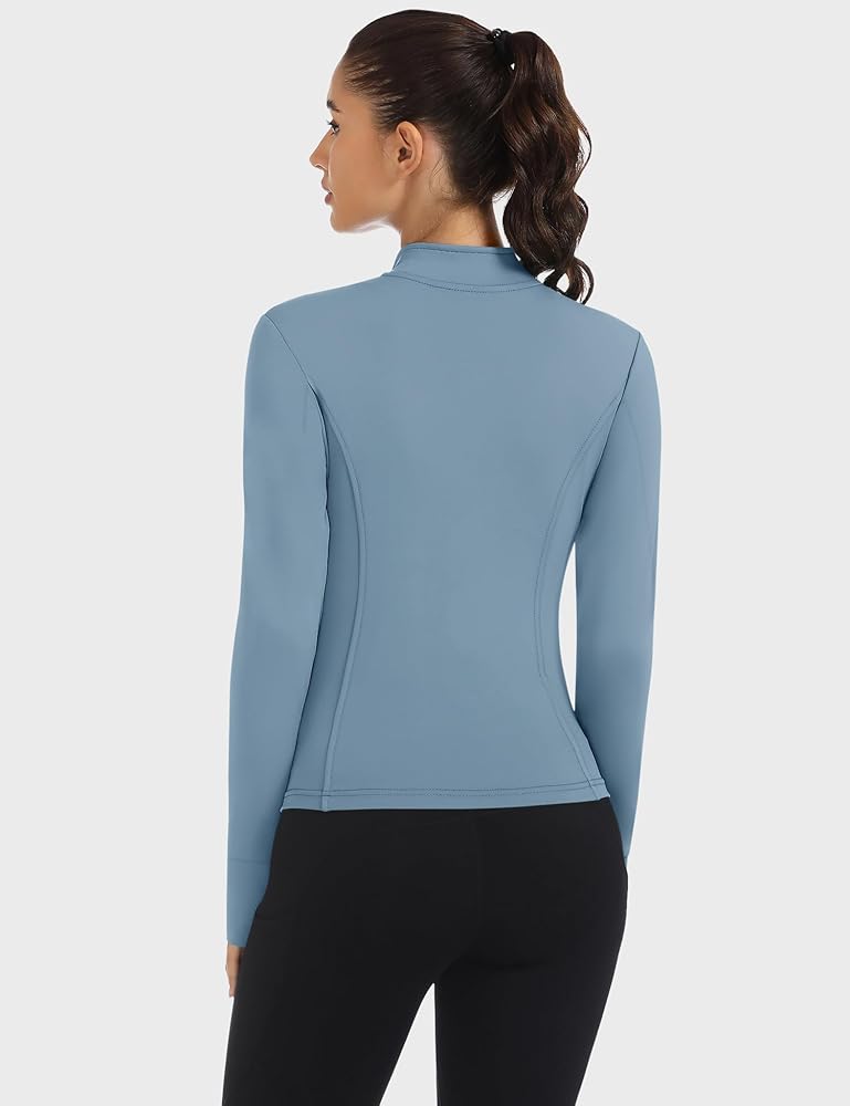 Yoga Jacket Design: The full-zip closure and stand-up collar allow for easy on-and-off during exercise; a contour-flattering curved seam accentuates your natural curves, creating a lifted, confidence-boosting silhouette.