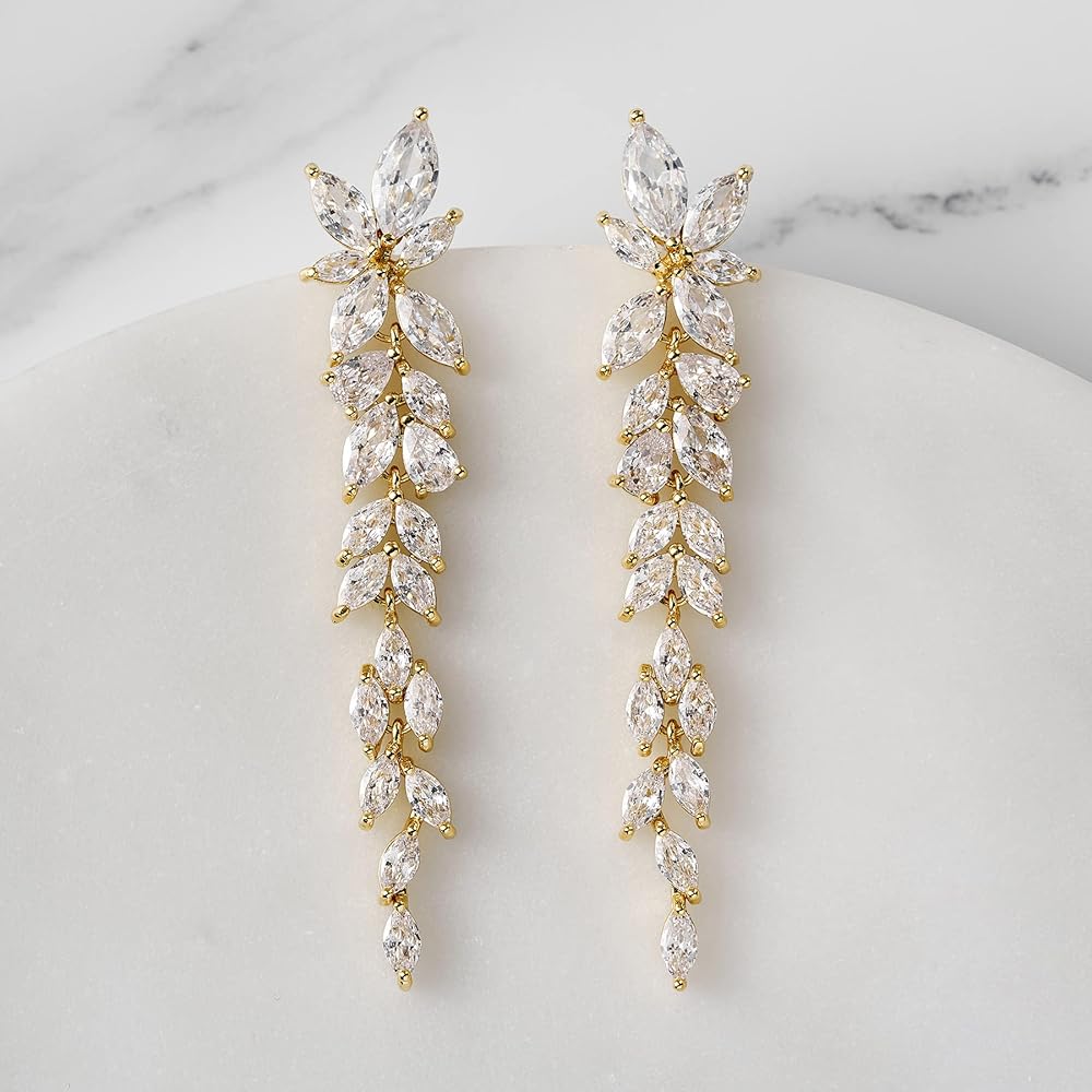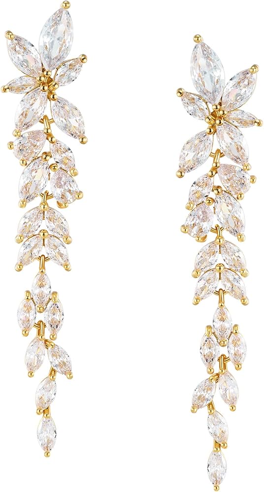 💓【Design】:Bridal drop earrings created with marquise cubic zirconia in a long vine design are stunning for bridal occasions whether you want a vintage or classic look.