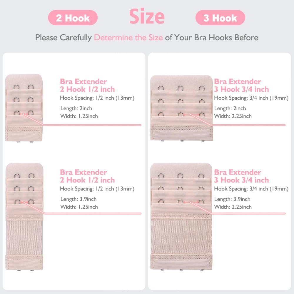 Bra Extender Size: Both the elastic and inelastic bra extenders' sizes are shown in the images for your reference, usually, they are suitable for many of your bras, but please carefully measure your bra before buying, so that the extenders could fit for your bra lingerie