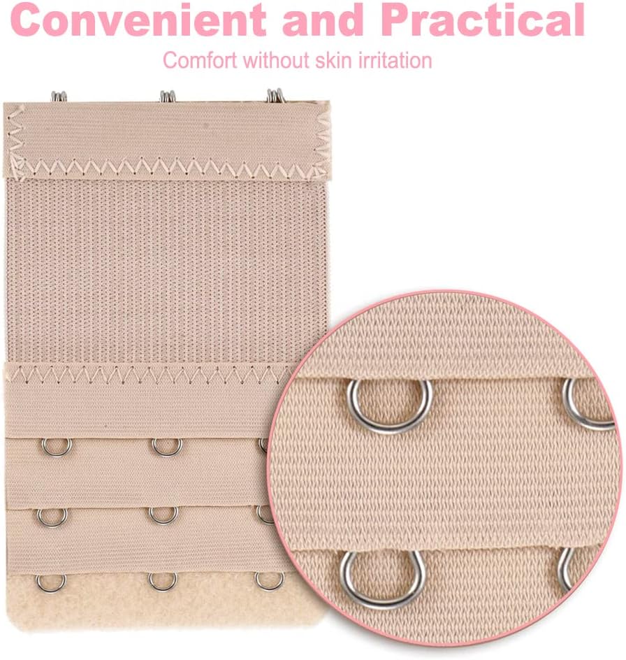 Package Included: 6pcs of both elestic and inelestic bra extenders, 3 Rows x 2 Hooks and 3 Rows x 4 Hooks Brasier strap extender,(Colors contain Black, White, Beige) More choice for you!