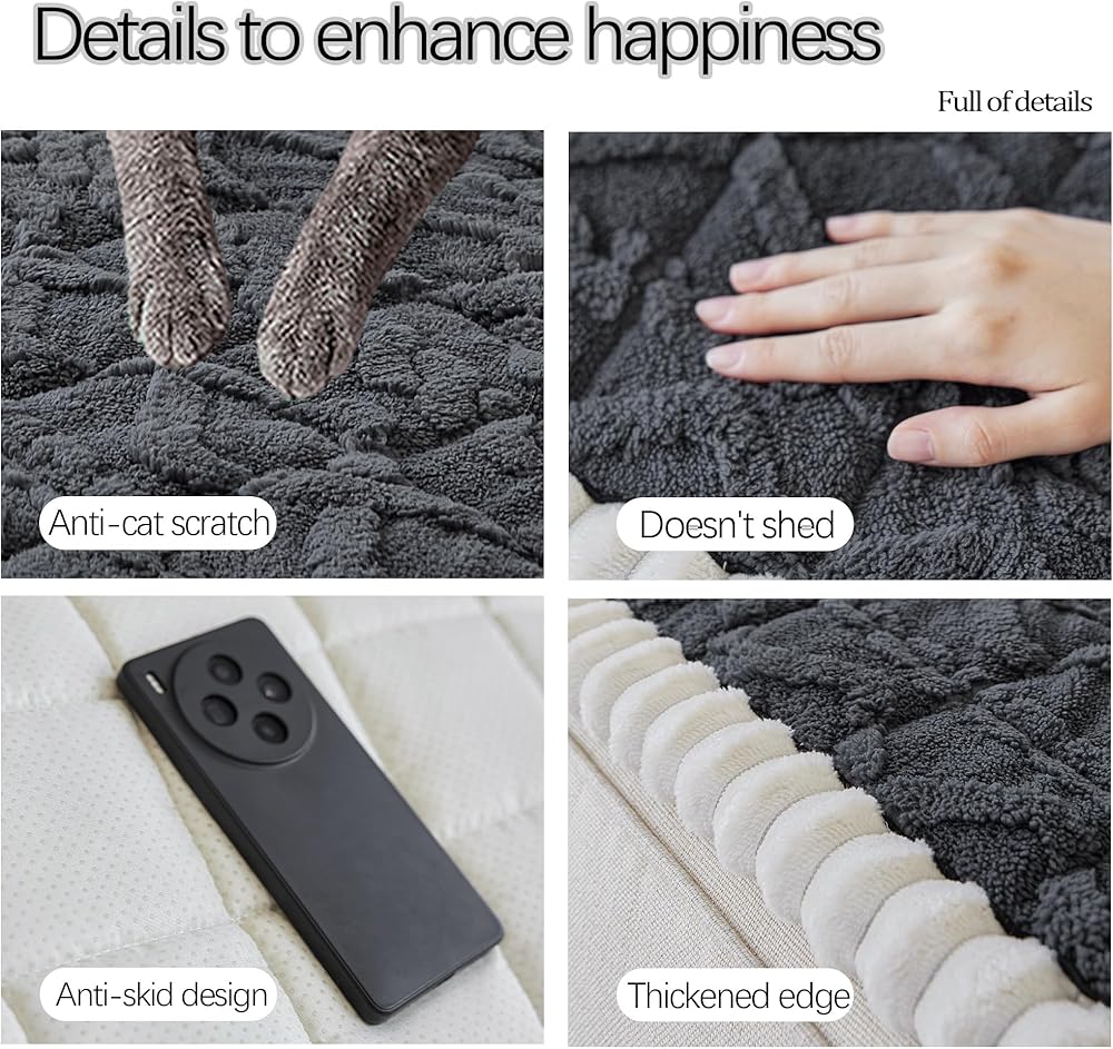 Pet friendly: The soft and comfortable surface of this product is made of plush material, and the thick layer provides the perfect place for pets to rest, and can effectively protect the sofa from damage when pets play. Pets and owners get long-lasting relaxation and pleasure on the sofa.