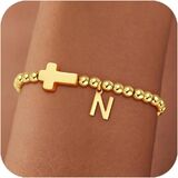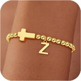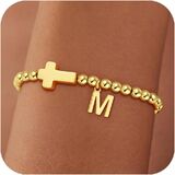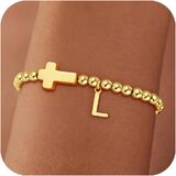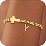 MEANING: This beautiful gold beaded initial bracelet with cross pendant and letters, Cross jewelry symbolize having faith in yourself.The initial letter represents you, your loved ones and someone important, choose a unique gifts foe them