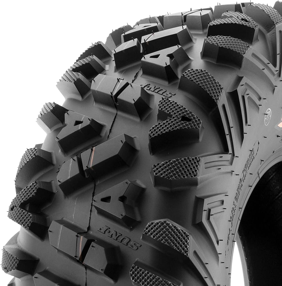 SunF Corporation has dedicated themselves to meeting their customer's demands and needs. SunF develops and manufactures a wide variety of quality tires in the specialty market. Their line up includes ST trailer, lawn and garden, agriculture, golf cart, ATV Quad Motorcycle, UTV Side by Side, light truck & more!The SUNF A033 ATV, UTV & SxS tire features the innovative "Power I" non-directional tread pattern, meticulously engineered for exceptional all-terrain performance, delivering reliable traction and stability.All-Terrain Mastery: Engineered to excel across diverse terrains such as mud, sand, rocky landscapes, and more, the A033 tire offers consistent and dependable performance across a wide range of off-road environments at a more affordable price (compared to Bighorn).Durable 6 or 8 Ply Construction: Available in both 6 and 8 ply options depending on size, the A033 tire is built for durability, effectively resisting punctures, cuts, and impacts, making it well-suited to withstand the rigors of off-road adventures.Shoulder Traction Enhancement: Equipped with advanced shoulder traction technology, the A033 tire ensures superior grip during turns and challenging maneuvers on a variety of terrains, enhancing off-road control for ATV, UTV, and SxS enthusiasts.Sizes Ranging from 22 to 32 Inches: With a size range spanning from 22 to 32 inches, the SUNF A033 tire caters to a broad spectrum of ATV, UTV, and SxS models and rider preferences, ensuring optimized traction and stability for various vehicle setups.Size 1: 30x10R14