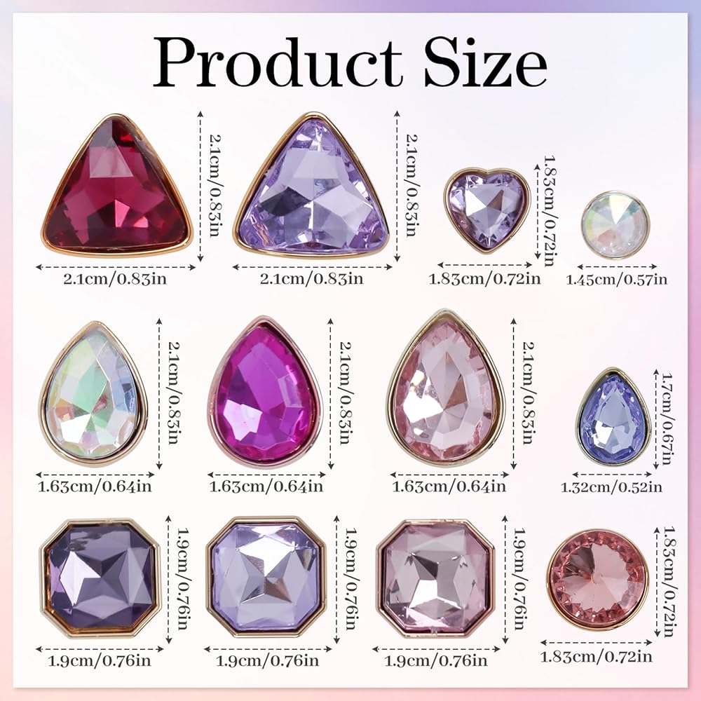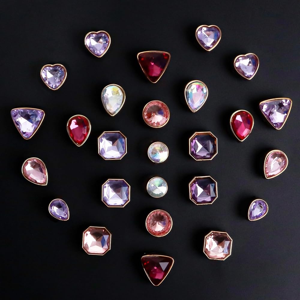 Bling Shoe Decoration Charms Set: This set includes 26 colorful jewels gems shoe decorations decoration charms. Variety colors and cute designs of lovely shoe charms make your shoes more interesting fun and unique. They are all sparkling and make your shoes the most eye-catching on the street.