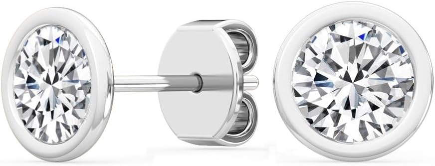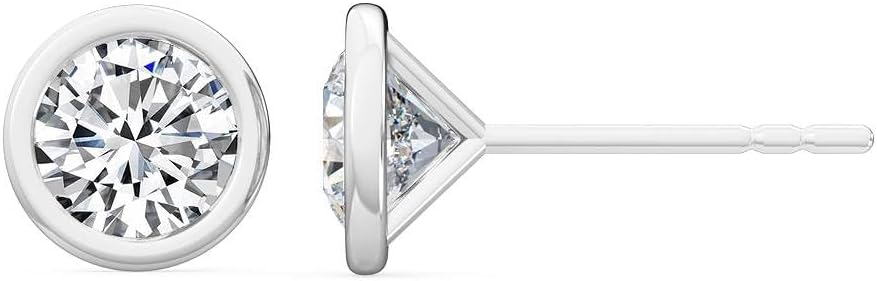 1-10 Carat (ctw) White Gold Round Cut LAB GROWN Diamond Bezel Stud Earrings Color E-F Clarity VS2-SI1