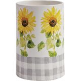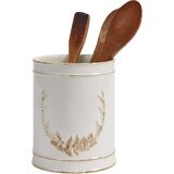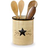 RUSTIC PRIMITIVE STYLE – Designed for farmhouse and country kitchens, this ceramic utensil crock features a hand-painted crackled wheat background, a bold black rim, and an embossed black star.