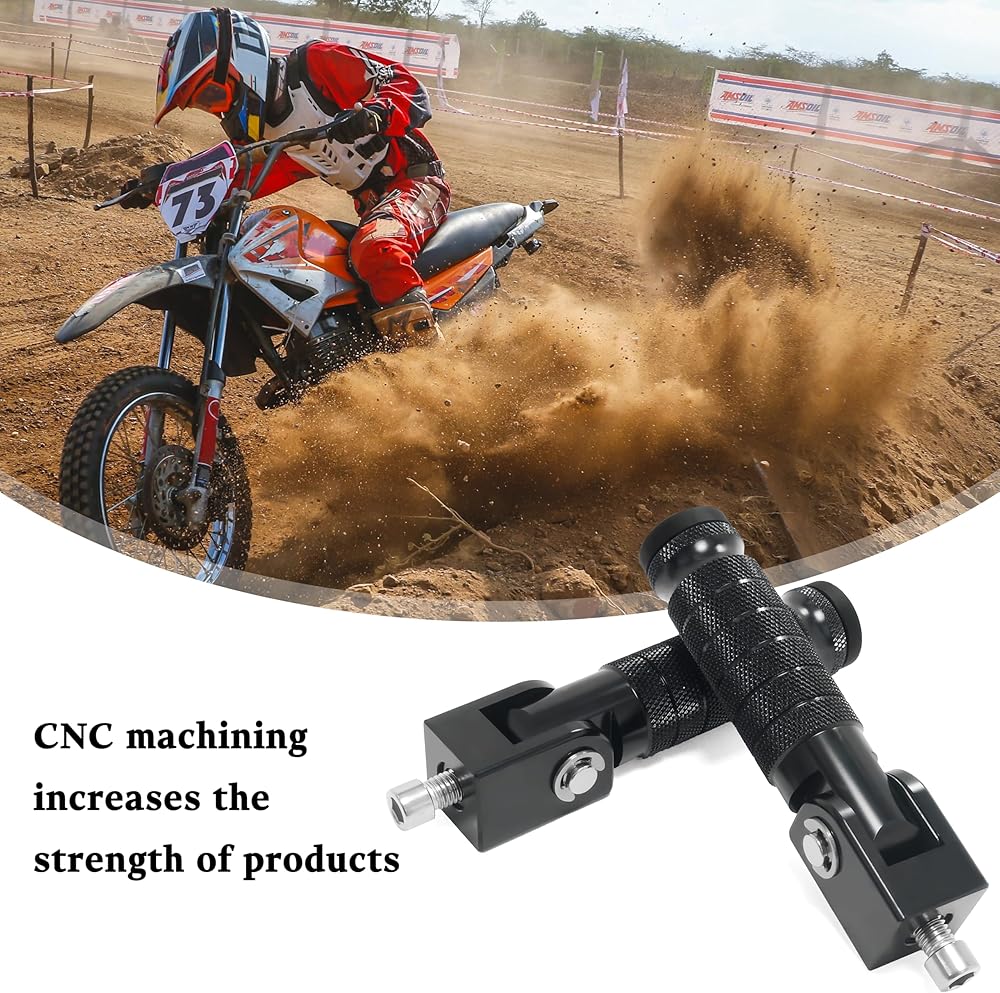 Wide Fitment: Compatible with a wide range of two- and four-wheel vehicles, including motorcycles, bikes, dirt bikes, ebikes, mini bikes, ATVs, UTVs, go karts, and scooters. These bike pegs fit any model that uses M8 mounting bolts, making them a versatile upgrade for popular brands like Honda, Yamaha, Suzuki, Kawasaki, and Super73
