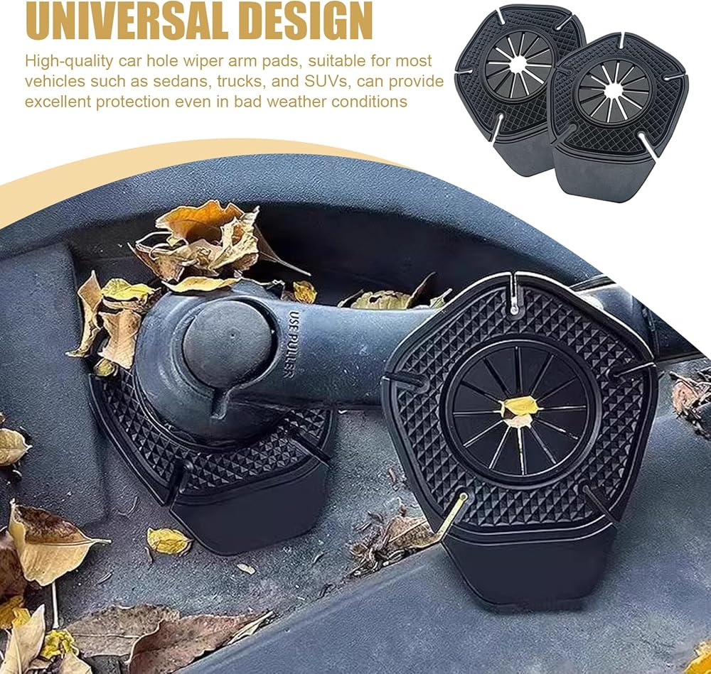 2 PCS Car Wiper Arm Hole Protection Pad, 2.87" x 3.54" PVC Auto Wiper Arm Bottom Protection Pads, Anti-Leaf Wiper Dust Jacket, Universal Wiper Arm Hole Protective Cover for Most Cars (Black)