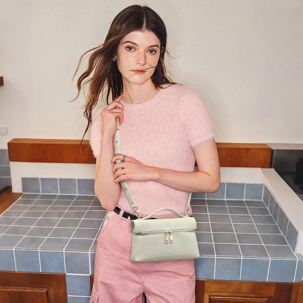 【Simple Elegant Style】 Reminiscent of top-handle vanity cases, the bag aesthetic is minimal and refined. It's no secret that some luxe lovers have since turned to the understated appeal of this bag for both its price tag and aesthetic.