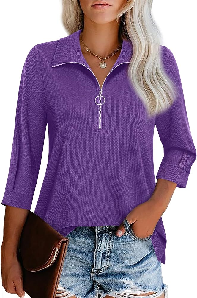 【Half Zip Design】The classic collar shape collides with the high-quality zipper design, when zip up, it visually presents a semi-high collar effect. Get down the zipper to create a more slouchy and slimming look. Careful design can maintain the comfort of this collared shirts for women while also bringing a unique aesthetic. And it is easy to put on and take off while also allowing for versatile and stylish styling at will.