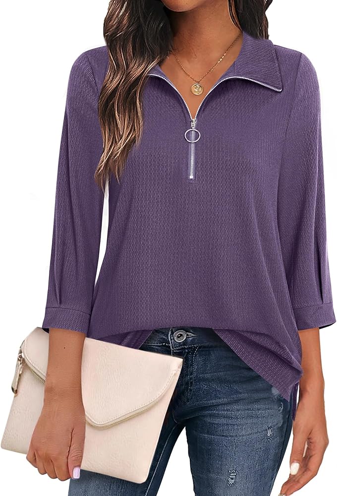 【Luxury Design】3/4 sleeve, zipper, side slit hem, flattering, unique, stretchy, and comfortable. Feminine V neck design can highlight the necklines and loose long length can hide belly well to make you look slimmer, fit any body type, and allows you to be comfy, stylish, and feeling confident. The womens blouses and tops dressy are perfect for a business casual style to show experienced and convinced. Very pretty, modern, vibrant, add mature. Great for taking pictures.