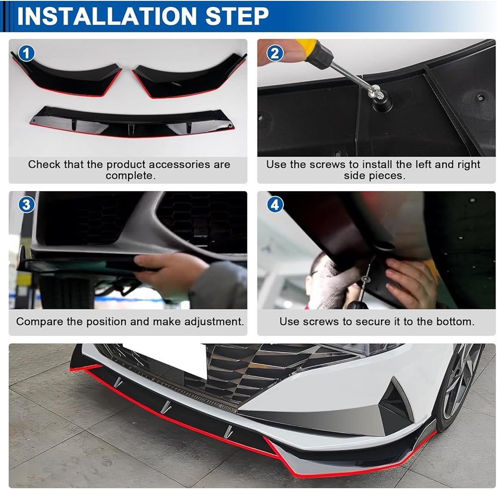 【Durable Material】Crafted from high-quality ABS material,this front bumper splitter is built to be durable and long-lasting.