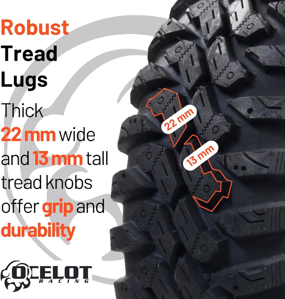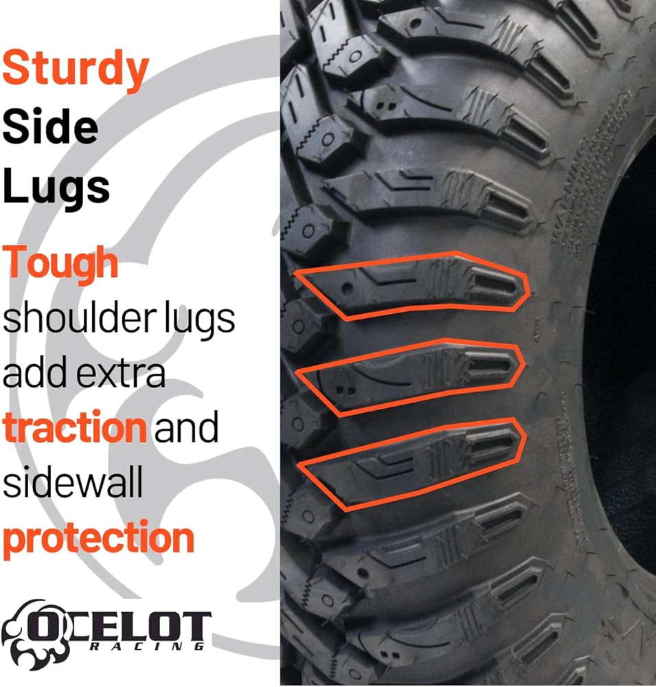 Ocelot Ohanzee ATV/UTV Tire 28x10R-14 High Performance All Terrain Style Riding, Durable 8-Ply Radial Construction and Non-Directional Tread Pattern with Thick lugs for Offroad Terrain and Conditions