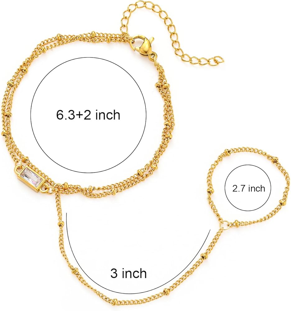 VERSATILE DESIGN: Elegant hand chain bracelet featuring a dainty ring connector and delicate chain design, perfect for stacking and layering