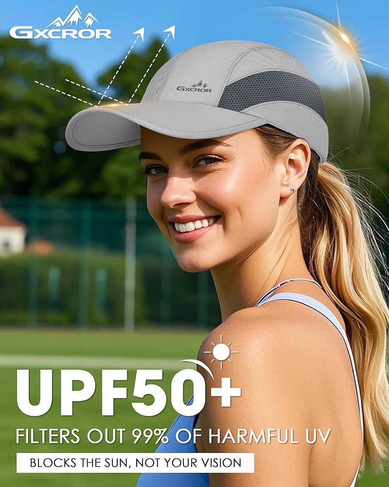 【Ultralight Multi-Sport Use】Weighs only 56g with reinforced 8cm sun visor, 3D structured design maintains shape for running hat women and men's hiking needs