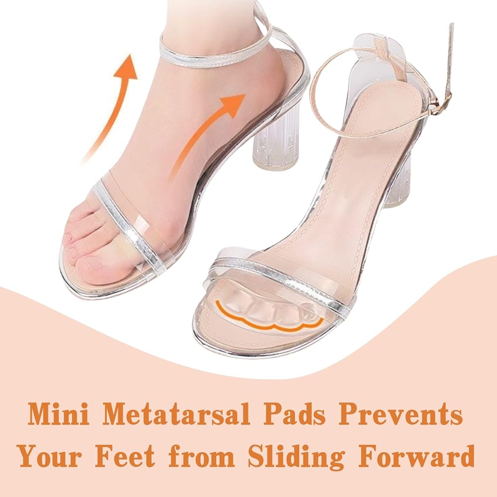 NO SLIDING – these mini metatarsal pads with raised sections prevent your feet from sliding forward or around in your shoes
