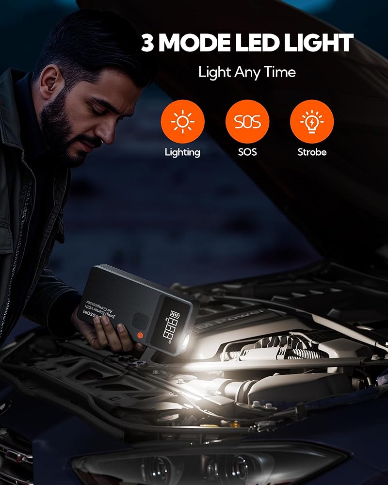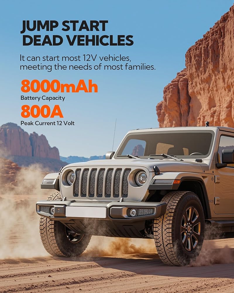 Emergency Car Kits for Vehicles:Spark JC8 Car Battery Jump Starter is your instant roadside rescue and the go-to solution for all your emergency battery needs.Whether your battery is dead or your tire is flat, it is always a great companion for your journey. It can easily handle most cars, SUVs, and pickups, and is suitable for gasoline engines with a displacement of up to 6.0 liters and diesel engines with a displacement of up to 3.5 liters.meeting the needs of most families