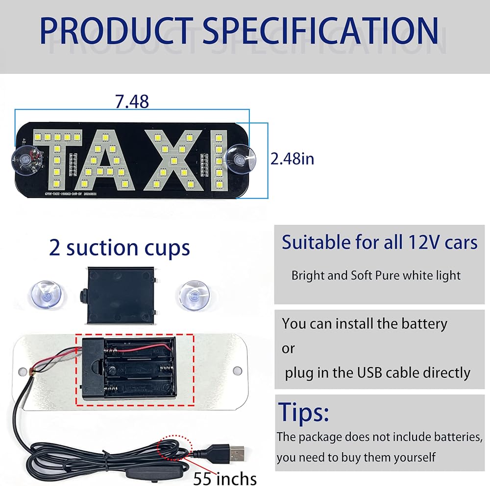 【Universal & Versatile Use】 Taxi Sign Light equipped with a USB jack universal for any vehicle, such as cabs, private cars, SUVs and other models.No Car Model Restrictions