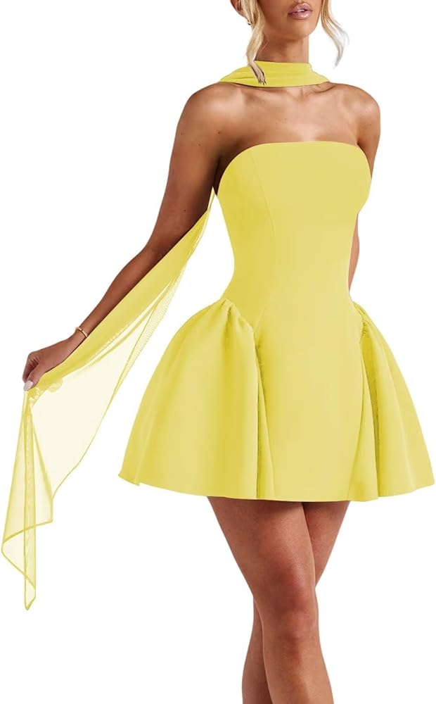 Dress Features: This is a Cute and Stylish strapless satin homecoming dress with scarf,halter a line cocktail party dress for women,sexy corset back prom party dress,it's a good choice to choose it as a special occasion dress.
