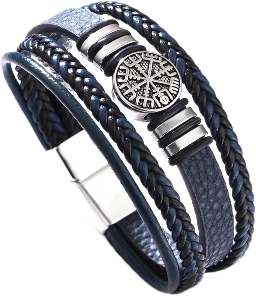 【Quality】Crafted with high-quality Stainless Steel & Genuine Leather, which is also being resistant to tarnishing and corrosion,this mens bracelet is designed to last a lifetime.Multi-layer Genuine Leather Mixed the Braided Rope.Special Internal Clasp, Slot and Pin Arrangement, Easy Put On Without Falling Off.