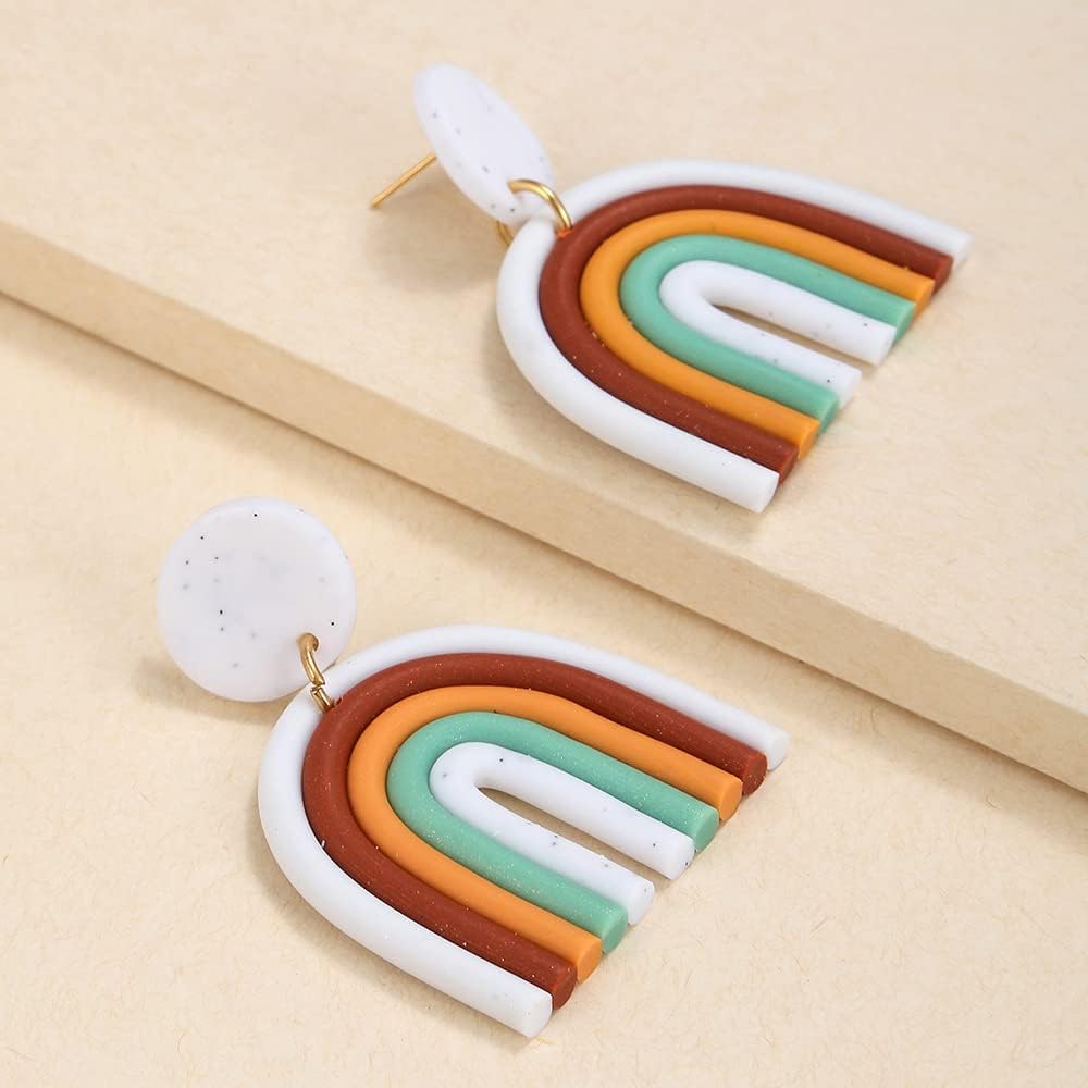 Warm Tip: Heart Rainbow Earrings:there is a white transparent plastic film on the surface of rainbow earrings. Please tear it off before use,which will be very smooth and bright if torn off before use.