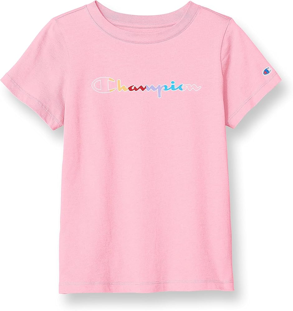 RAINBOW FUN - Bold Champion script pops against this white t-shirt for girls, making it an instant fave.