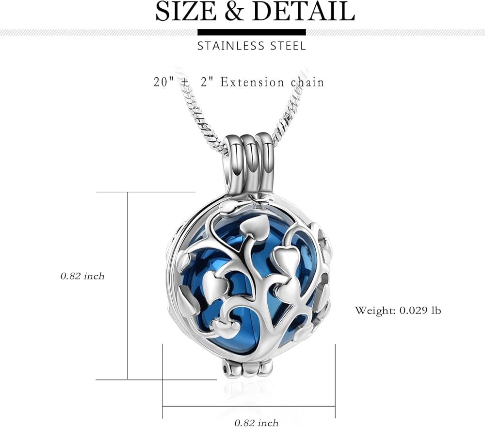 【Keepsake Ash Urn NecklaceCustomize】This Tree Ball Necklace Urn can be engraved.You can show your love by customizing this engraved ash necklace personalized for that special someone in your life.Select the"Customize " option, Select the color,Select the font,Fill in the words.