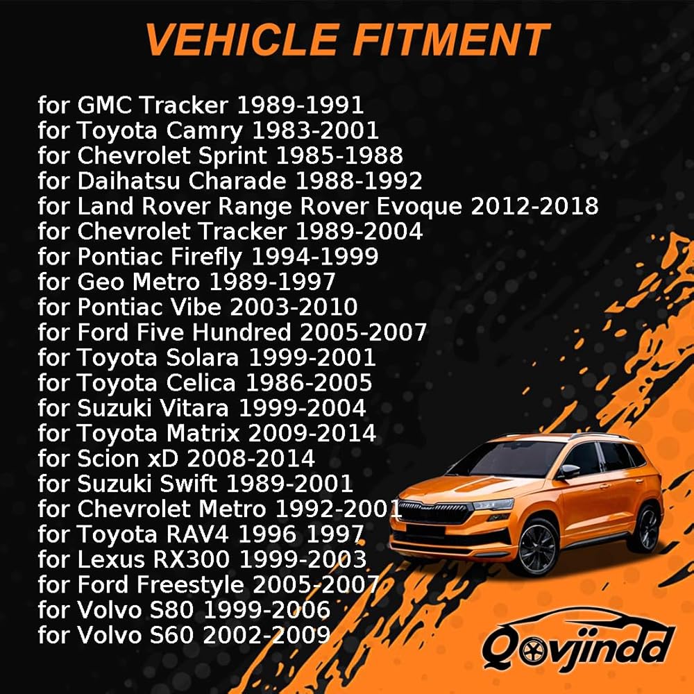 for Pontiac Firefly 1994-1999 for Pontiac Sunrunner 1994-1997 for Pontiac Vibe 2003-2010 for Scion xD 2008-2014 for Suzuki Grand Vitara 1999-2005 for Suzuki Swift 1989-2001 for Suzuki Vitara 1999-2004 for Toyota Camry 1983-2001 for Toyota Celica 1986-2005 for Toyota Corolla 1990-2017 for Toyota MR2 1988-1995 for Toyota Matrix 2009-2014 for Toyota RAV4 1996-1997 for Toyota Solara 1999-2001 for Volvo 850 1997 for Volvo S60 2002-2009 for Volvo S80 1999-2006 for Volvo V50 2005-2011